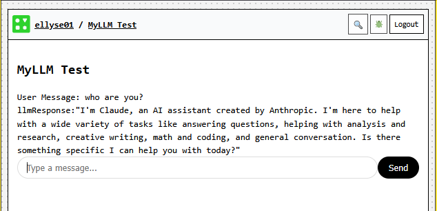 This is handled for us by the reactive system we just talked about. Specifically, the llm() built-in will re-execute every time userMessages is updated. We can then use the variable llmResponse to view the response, which we’ll do right now.
