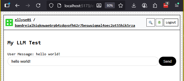 If you deploy and run it, you should be able to enter a message into the input form, then wait a few seconds and see a response from our friendly LLM. Here is what it looks like for me: