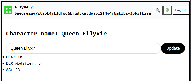 When we click on the button, the elements that depend on the value of that cell are also updated. This means the DEX, DEX Modifier, and AC values are all updated.